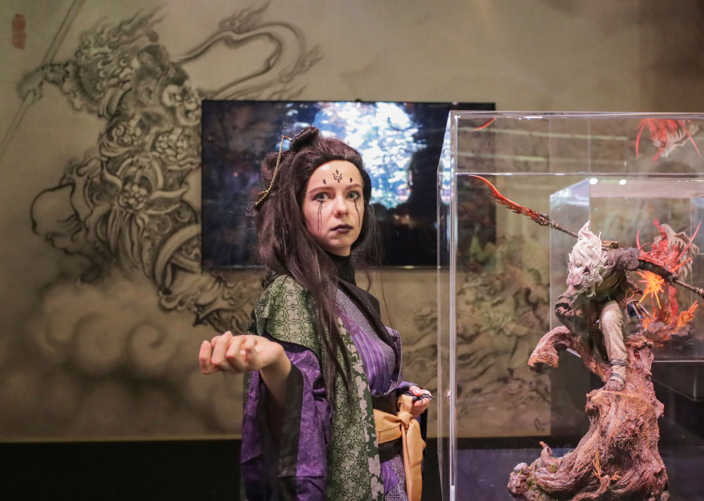8月20日,在德國科隆,玩家在科隆游戲展的靈游坊展臺試玩游戲《影之刃零》。新華社記者張帆攝
