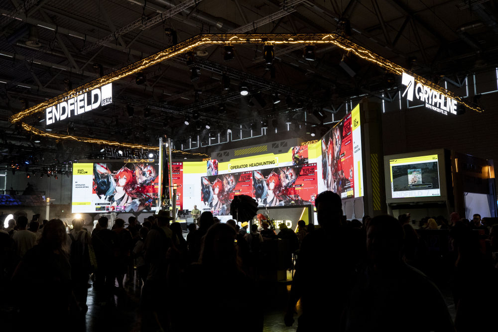 8月21日,在德國科隆,觀賞者在科隆游戲展不雅看游戲《明日方船:終末地》對戰。新華社記者張帆攝